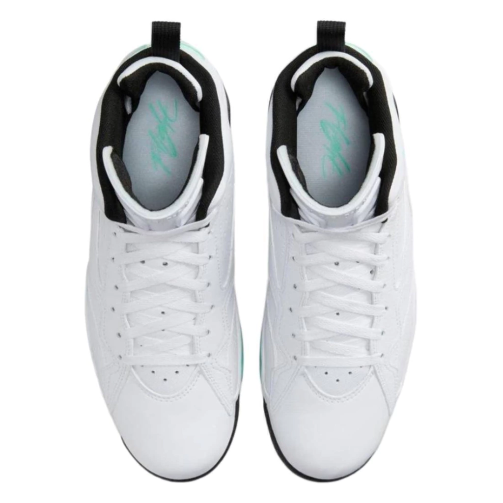 - Cabedal é um mix de elementos do AJ6 e AJ7: a parte superior da língua e a camada modificada fazem referência ao AJ6, enquanto o forro parcial na camada interna homenageia o AJ7.